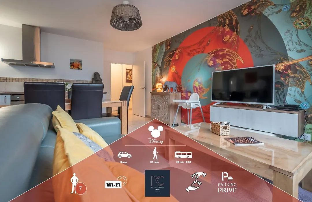 *Disneyland-Paris* 7Pers, Wifi, Parking, Netflix располагаются в 36 минутах езды от аэропорта Шарль-де-Голль.